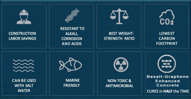 Basalt-Graphene enhanced concrete Concrete is Sustainable while reducing set time and labor by 50%